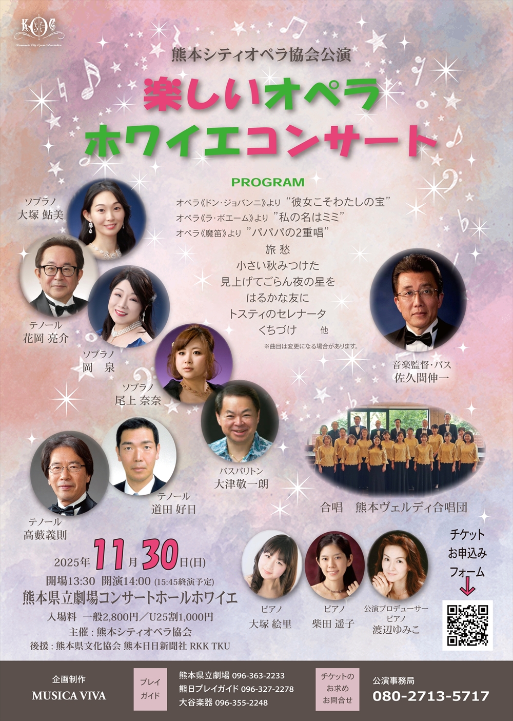 前半はオペラの中からアリア、重唱 後半は親しみやすい日本の曲などを集め、皆様に楽しめる内容となっております |