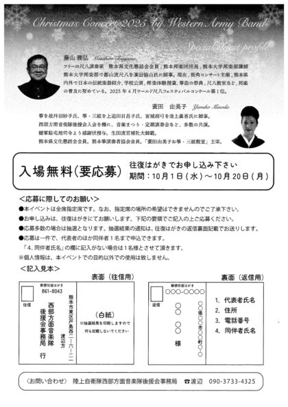 陸上自衛隊西部方面音楽隊後援会事務局090-3733-4325(渡辺)