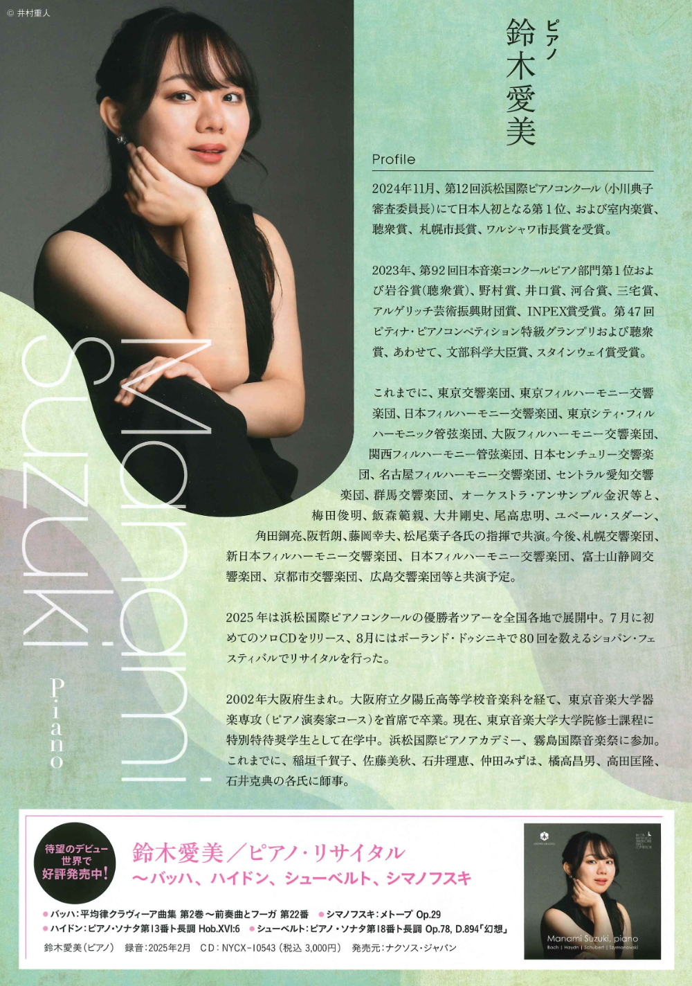 浜松国際ピアノコンクール 日本人初の覇者「鈴木愛美」ピアノリサイタル