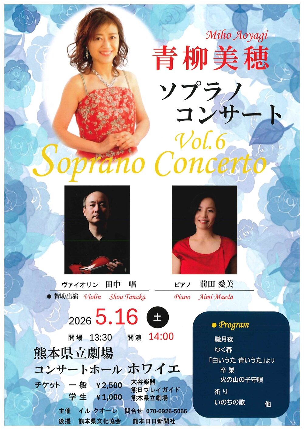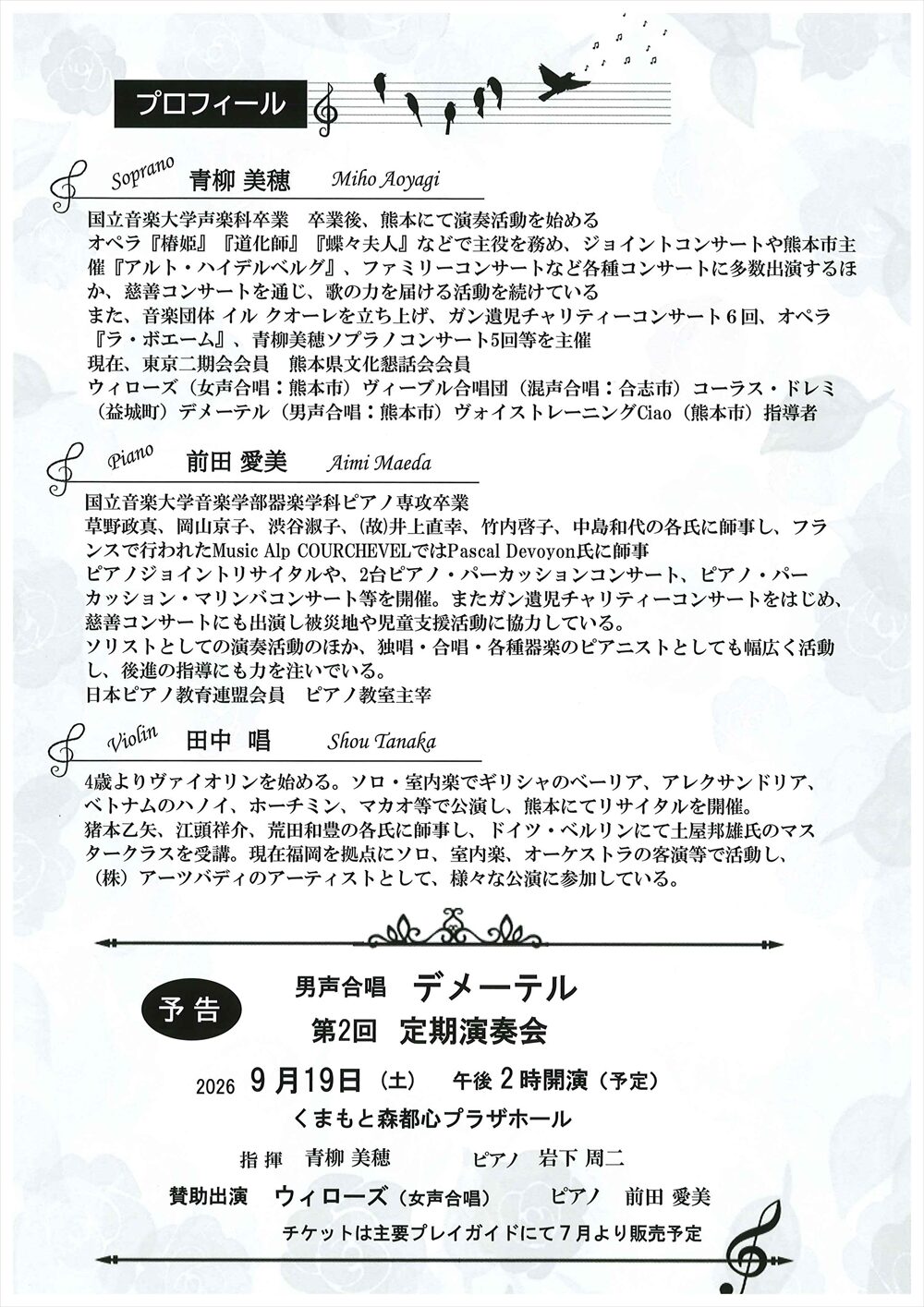 ソプラノ 青柳 美穂 ヴァイオリン 田中 唱 ●賛助出演 ピアノ 前田 愛美 |