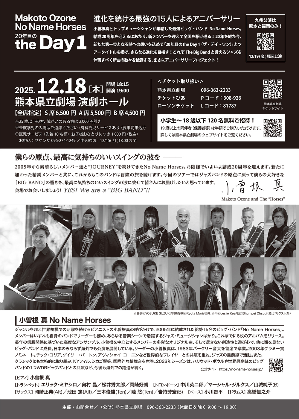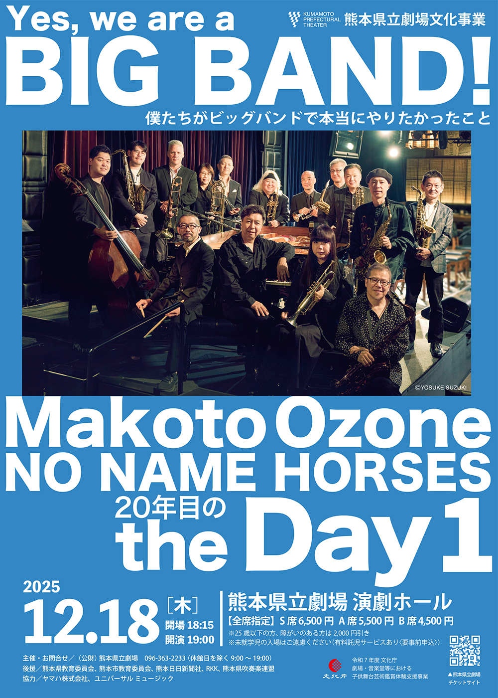 2025年に結成20年目を迎え、松井秀太郎(Tp)、陸悠(Ts)、小川晋平(B)の3名の新メンバーを迎えてバンドは新たなスタートを切る。2025年1月から全国ツアー「Makoto Ozone No Name Horses ~20年目のthe Day 1~」(全国7か所)を開催し、ツアーは2025年12月から第二弾を開催。これぞThe Big Bandと言えるジャズの王道を体現する新しいナンバーの数々を披露している。